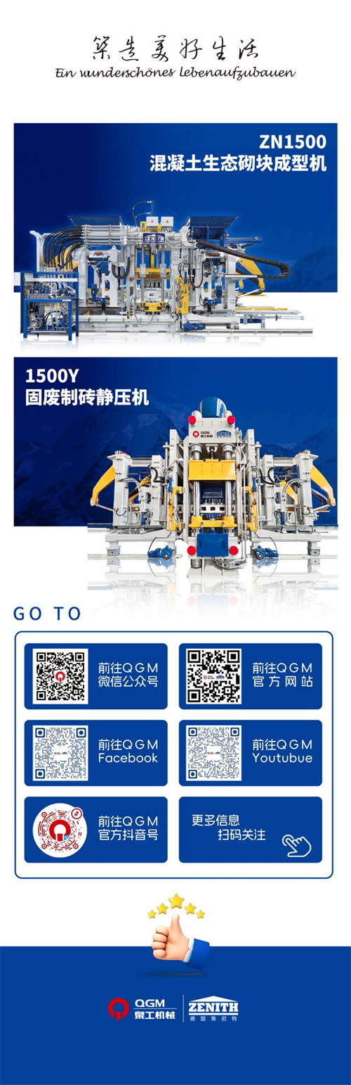 Quangong Machinery Co., Ltd est une entreprise de haute technologie spécialisée dans la recherche, le développement, la fabrication et la vente d'équipements de moulage d'éco-blocs. Avec quatre filiales dans le monde entier, la base de production de QGM à Quanzhou, Fujian, est divisée en installations de production d'équipements et de moules. La base d'équipement occupe 130 000 mètres carrés, avec un atelier de production de 40 000 mètres carrés ; le fond de moule occupe 12 000 mètres carrés, avec un atelier de 9 000 mètres carrés. À ce jour, l'entreprise a obtenu plus de 300 brevets de produits et a été reconnue comme l'un des premiers champions de la fabrication par le ministère de l'Industrie et des Technologies de l'information, un projet de démonstration de fabrication orientée services du ministère de l'Industrie et des Technologies de l'information et une usine verte nationale.