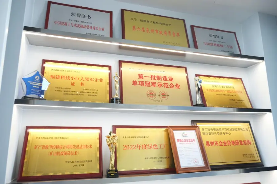En tant qu'entreprise leader dans l'industrie nationale des équipements de moulage de blocs, Quangong Machinery Co., Ltd. a toujours adhéré à l'innovation technologique comme principale force motrice, intégrant profondément le travail de propriété intellectuelle dans sa stratégie de développement d'entreprise et sa gestion globale de l'entreprise. La société renforce continuellement la recherche technologique de base et la présentation de brevets de grande valeur dans des domaines technologiques clés tels que le moulage de blocs écologiques, l'utilisation des ressources de déchets solides et les ensembles complets d'équipements intelligents, en créant un système systématique de gestion de la propriété intellectuelle couvrant la R&D, la fabrication et les applications de marché, fournissant ainsi un soutien solide au développement de haute qualité de l'entreprise.