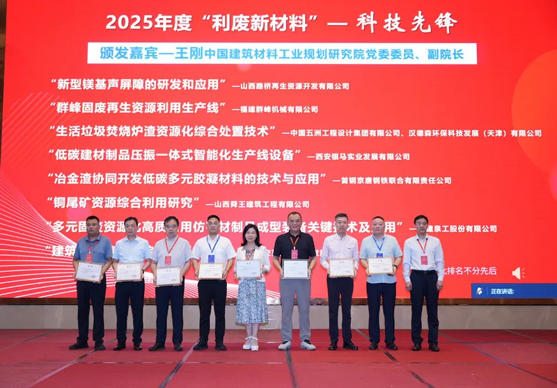 Lors de cette conférence, QGM a remporté le prix pionnier de la technologie «usurant les déchets»-TECHNOLOGIE 2025 pour ses performances exceptionnelles dans les technologies et les applications clés pour une utilisation de grande valeur de multiples ressources de déchets solides et d'équipement de moulage de produits en pierre. Cet honneur n'est pas seulement une grande reconnaissance de l'innovation technologique de QGM dans le domaine de l'utilisation complète des déchets solides, mais aussi une affirmation de sa contribution à la promotion du développement vert et en aidant à atteindre les objectifs du pic de carbone et de la neutralité du carbone. Grâce à la recherche technologique et au développement et à l'innovation continus, le QGM a transformé les déchets solides en matériaux de construction à forte valeur ajoutée, a ouvert une nouvelle voie pour l'utilisation des ressources des déchets solides et a établi une référence pour l'industrie.
