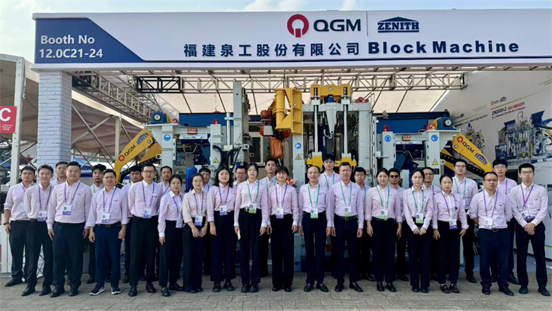 Du 15 au 19 octobre 2025, la 138e Foire d'importation et d'exportation de Chine (Foire de Canton) s'est tenue en grande pompe au Centre d'exposition international de Guangzhou Pazhou. Fujian Quangong Machinery Co., Ltd (QGM), leader mondial des machines à béton, a présenté sa machine de formage de béton ZN1000-2C et une variété d'échantillons de briques, complétant ainsi sa participation au salon.