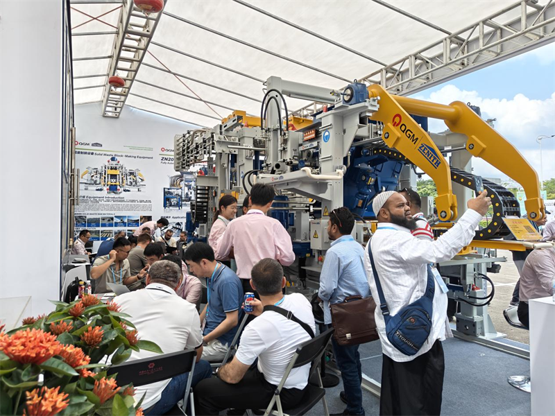 Lors de la Foire de Canton, QGM a organisé une double exposition sur les stands 12.0 C21-24 à l'extérieur et 20.1 K11 à l'intérieur. L'entreprise a présenté sa machine de fabrication de briques entièrement automatique ZN1000-2C, une machine de formage de blocs de béton haut de gamme représentative. Intégrant des technologies chinoises et allemandes avancées, cette machine présente des avantages exceptionnels tels qu'un rendement élevé, une haute précision, une faible consommation d'énergie et une technologie intelligente, démontrant pleinement la position de leader de QGM dans la fabrication intelligente et les équipements de matériaux de construction écologiques.