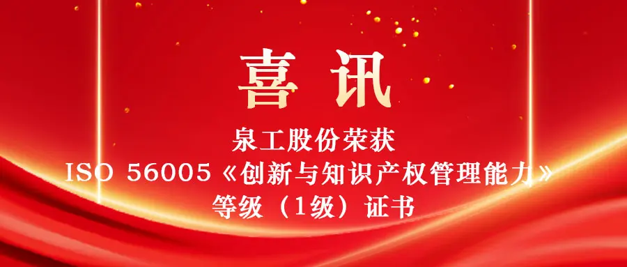 Quangong Machinery Co., Ltd. a obtenu la certification ISO 56005 « Capacité de gestion de l'innovation et de la propriété intellectuelle » niveau 1, améliorant ainsi ses capacités d'innovation et de gestion de la propriété intellectuelle.