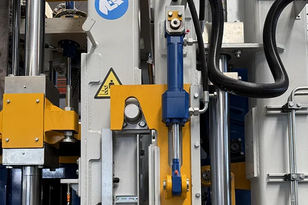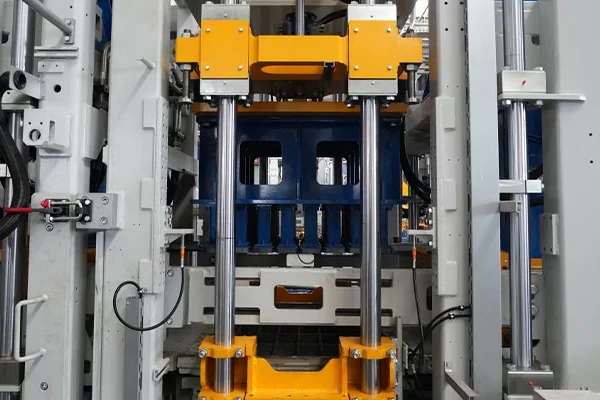 7Dispositif de verrouillage de la tête de presse Ce mécanisme de verrouillage mécanique se compose de blocs de verrouillage à haute résistance, d'une tête de presse en forme de coin et de vérins hydrauliques à double effet. Lors du démoulage, les cylindres entraînent les blocs de verrouillage pour serrer radialement la tête de presse, formant ainsi une impasse mécanique. Le moule est ensuite libéré sous pression constante, éliminant efficacement le rebond élastique et les micro-mouvements, garantissant ainsi des bords de brique tranchants, des surfaces lisses et un taux de qualification de produit considérablement amélioré.