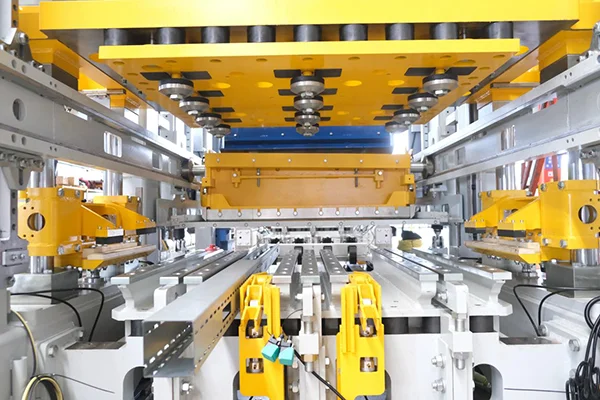 2Système de changement de moule rapide et automatique Le système de changement rapide et automatique de moule de Zenith est basé sur le fonctionnement coordonné de plusieurs appareils, permettant un remplacement de moule intelligent, rapide et précis. Une fois le moule transporté à côté de la machine principale, il est placé sur l'unité de changement de moule par un système de levage. Le système termine automatiquement le processus de changement de moule sans manipulation, positionnement ou verrouillage manuel.
